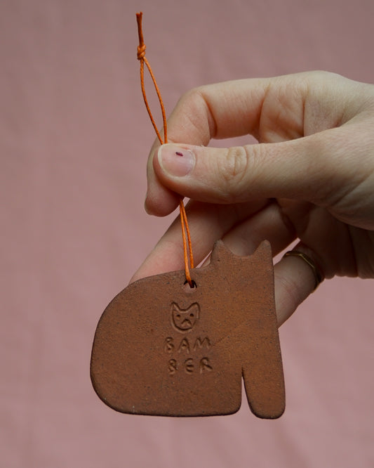 Burnt Orange Cat Hanging Ornament