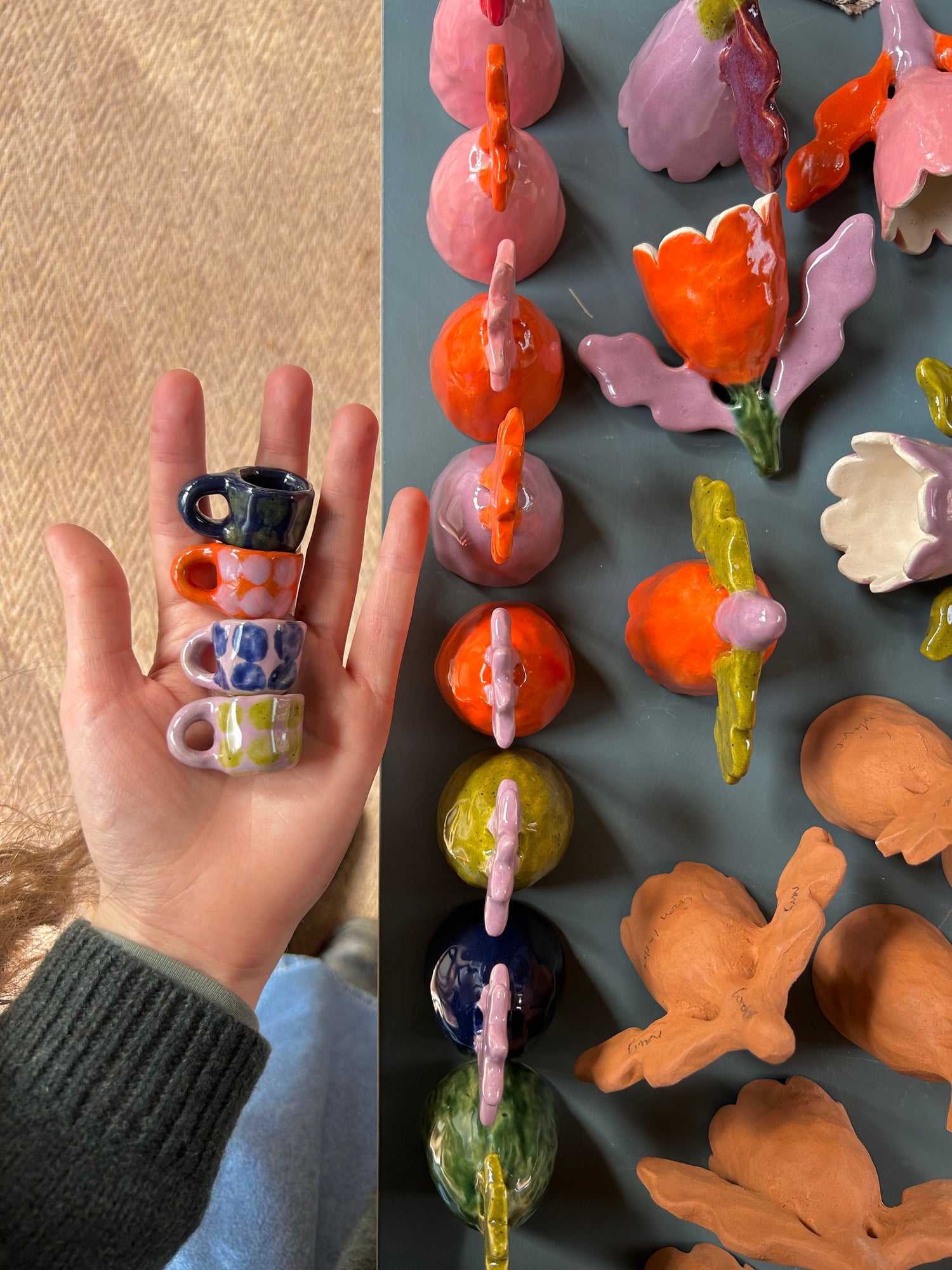 I recommend that you book sessions in sets of 2 - so you can have one week for making and another for painting and glazing. For some situations you might not need a glaze session (for example if you were wanting to make some terracotta plant pots), but anything which needs to be food-safe or water resistant would need to be glazed.